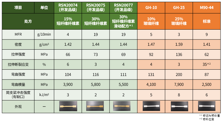 DURACON POM短纤维纤维素增强等级的主要特性